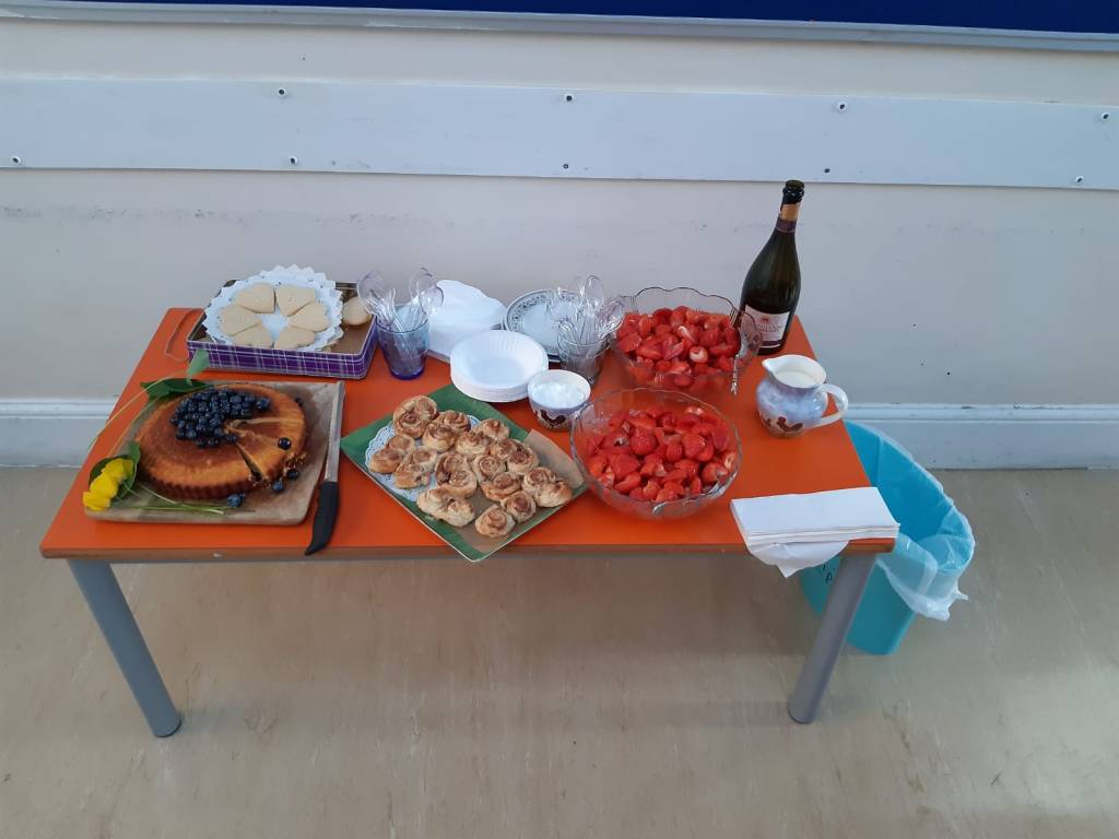On Easter Saturday morning, seeing the leaden skies, I decided to watch the TV chefs to see what suggestions they might have and turned on Saturday Kitchen with the lovely James Martin who was very sensibly preparing a traditional, sit down roast lamb lunch for 6. He was followed by the charmingly beautiful (and I’m certain fragrant) Rachael Khoo. In her tiny kitchen Rachael was dashing off an amazing tray of brilliantly coloured roast vegetables and a savoury cake made with cheese and figs for her three (paying) visitors. These TV chefs provided no tips on how to cook 40 sausages, chicken legs or lamb chops or where to put salads, bread and some kind of pudding. OMG – I was panicking now.